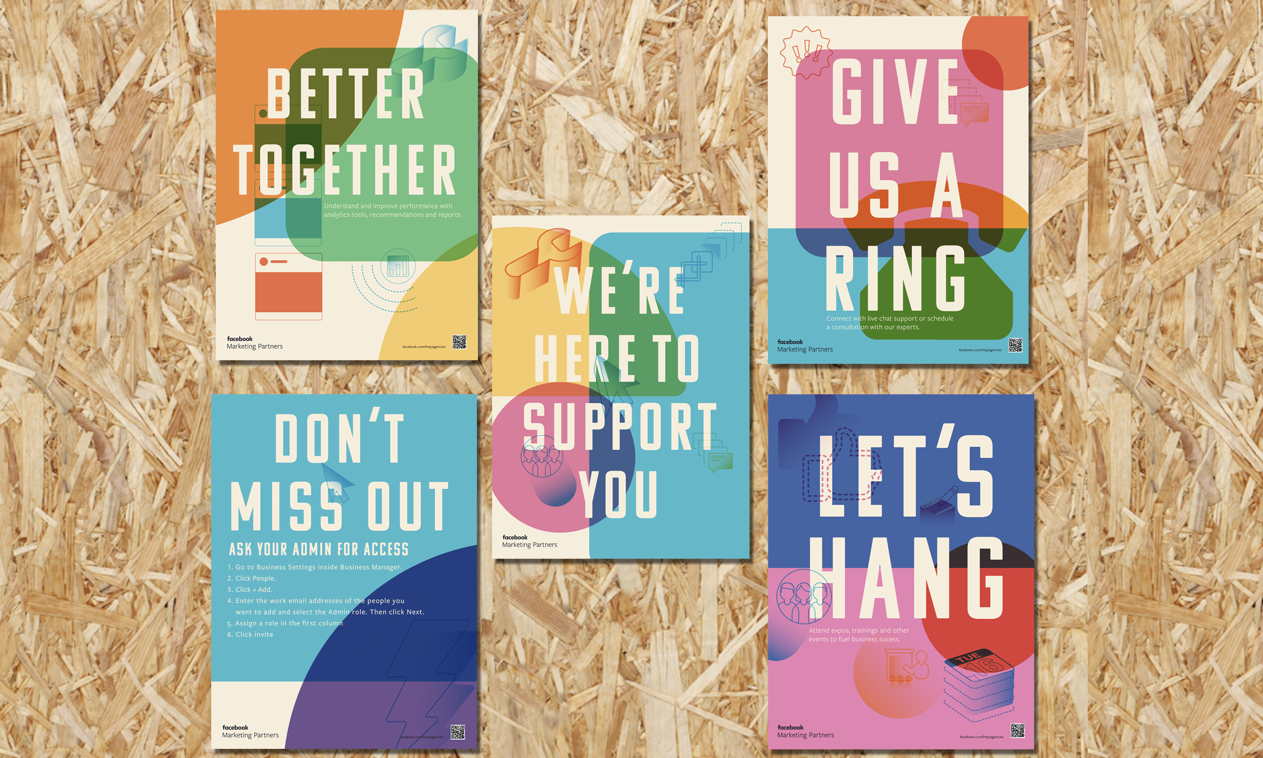Facebook marketing partners is an organization within Meta/Facebook that offers clients extra benefits with their ad spend. I was brought on freelance to develop posters and marketing material that essentially would bring the Meta branding into their office to make them truly feel like partners.
